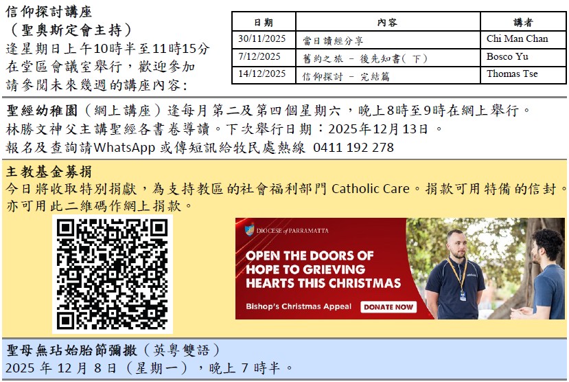 Diocese of Parramatta Chinese Chaplaincy Announcements