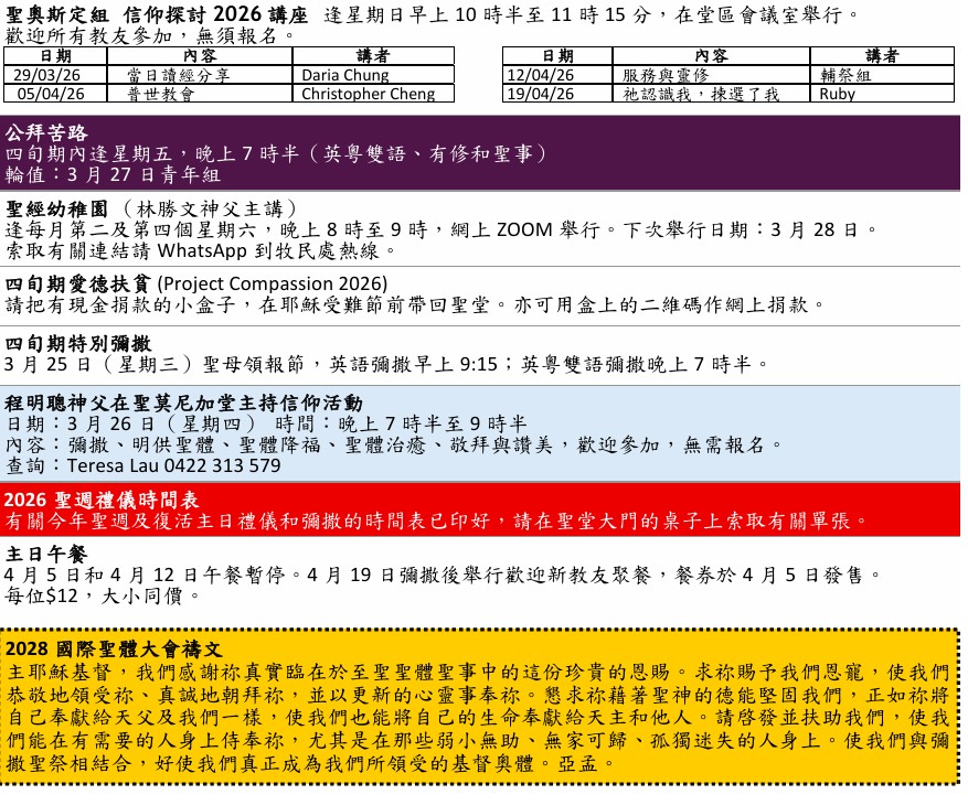 Diocese of Parramatta Chinese Chaplaincy Announcements